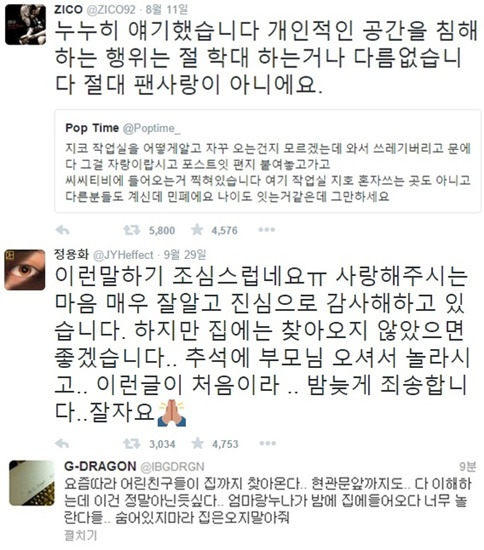 지난 8월 아이돌 그룹 블락비의 멤버 지코는 SNS에 사생팬들에게 일침을 가했다.