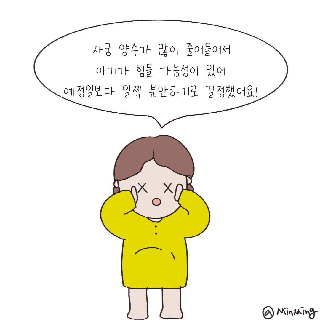 예상치 못하게 자궁 양수가 많이 줄어들어