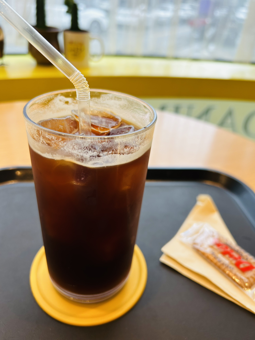 늘 지나쳤던 집 앞 카페, 꼭 먹고 싶을 땐 테이크아웃을 했는데 오늘은 그 안에 머물러 앉기로 했다. 주문한 아이스커피 한 잔과 쿠키 하나~ 좋다.