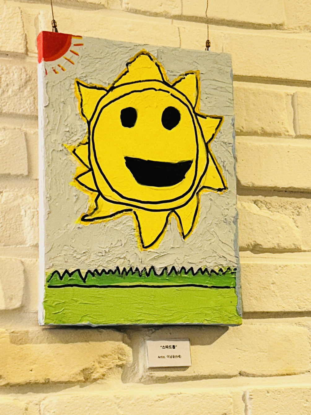 벽에 달린 그림 한점 한 점이 눈에 들어와 살펴보니 인근 초등학교 아이들의 작품들, 카페와 학교가 연결되어 아이들의 작품을 공유한 것.