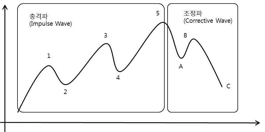 엘리어트 파동 이론은 증권시장에서 일어나는 주가 파동이 일련의 법칙을 따라 발생된다는 점을 보여준다. 주식의 파동은 주식시장의 장세에 변화를 가져오는 충격파동(Impulse Wave)과 그 변화에 저항하며 기존의 질서를 회복시키고자 하는 조정파동(Corrective Wave)로 구성된다. 재미있는 점은 추격파동은 다섯 개의 굴곡, 조정파동은 세 개의 굴곡으로 구성된다는 법칙이다. 충격파동은 세 번의 공격, 조정파동은 두 번의 방어로 구성된다고 이해할 수 있다.