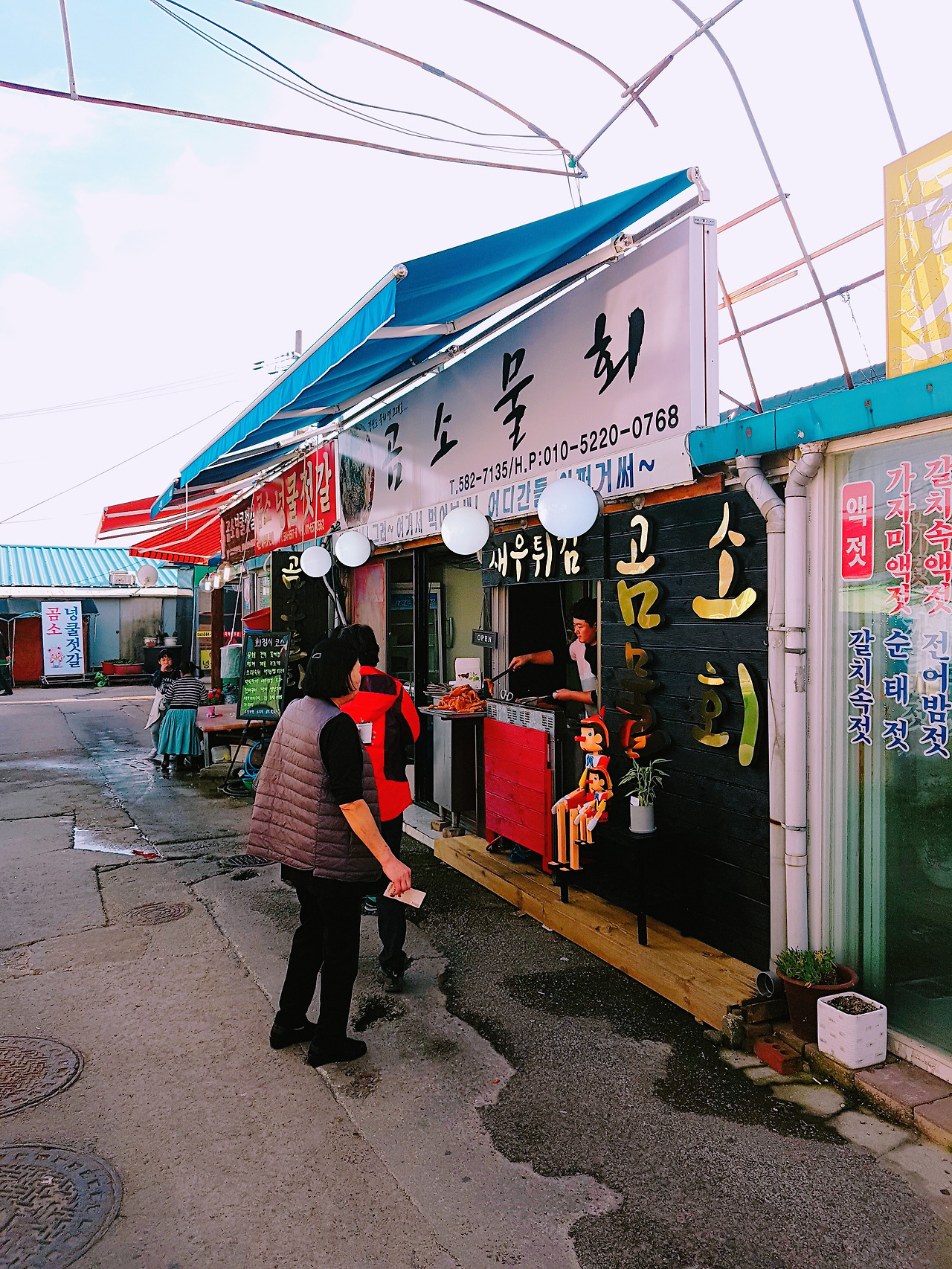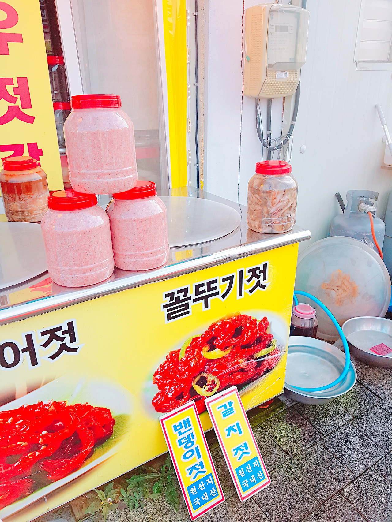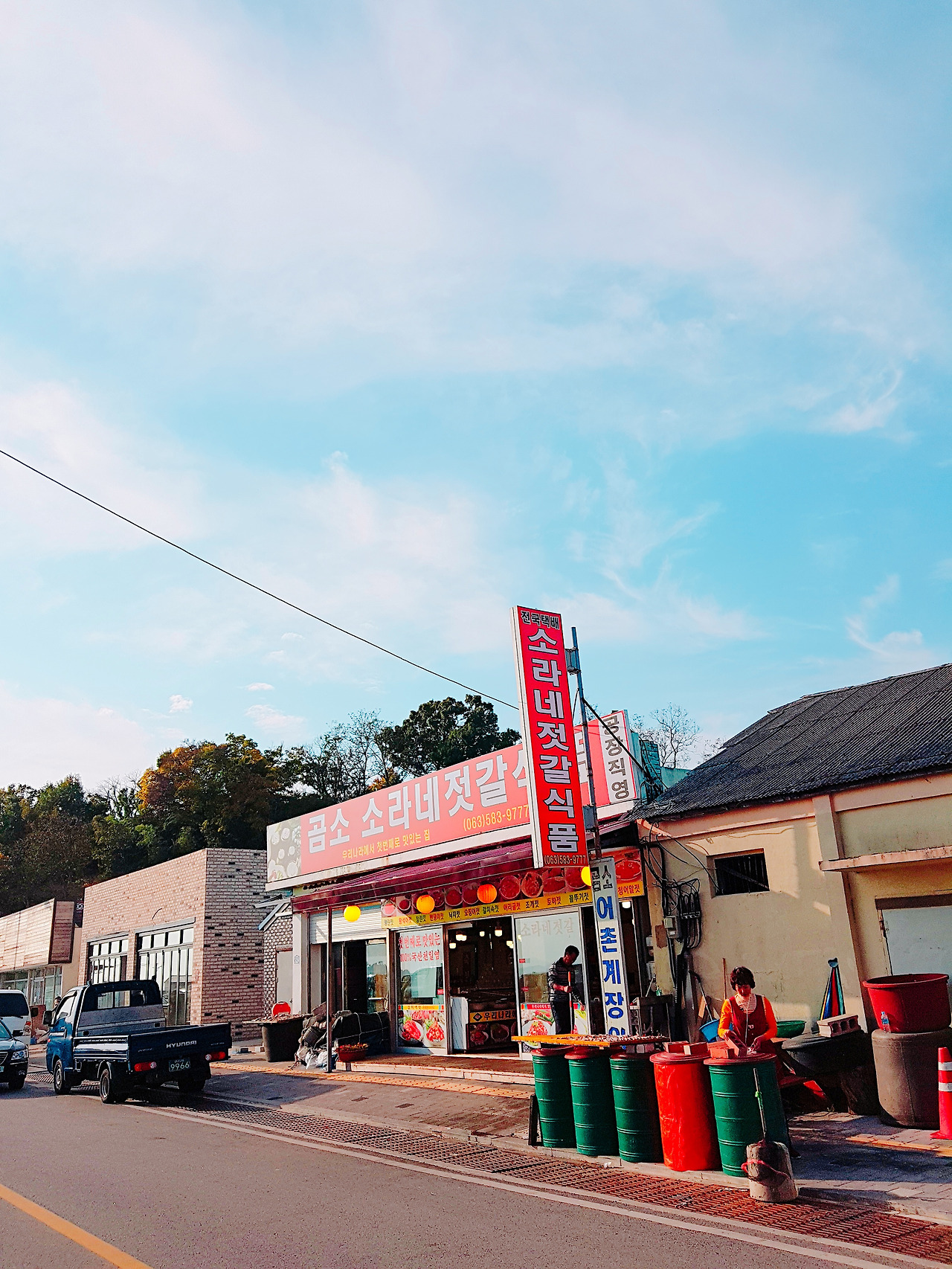 우리나라에서 젓갈하면 가장 유명한 곰소시장. 정읍역에서 차를 빌려서 20분정도 변산반도로 이동하자 아니다 다를까 빨간색의 관광버스로 가득한 좁은 도로가 나온다. 사람들이 저마다 손에 한가득 미역이며 멸치며, 소금이며 갈치 말린것들을 집어 들고서 바쁘게 돌아다닌다. 곰소젓갈이 바로 눈앞에 펼쳐져 있었다. 어머니와 이모는 여기저기 어릴적 전라도 해남에서 경험했던 ‘맛’을 찾아다 분주해지셨다. 나는 그런 뒷모습을 바라보면서 나름의 감성과 낭만으로 곰소의 역사를 찾아보고, 시간의 무상에 대해서 생각했다. 나는 이런 시간이 좋았다.