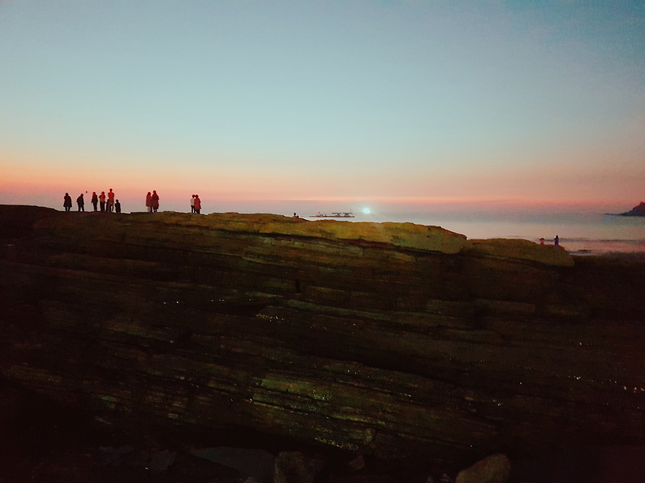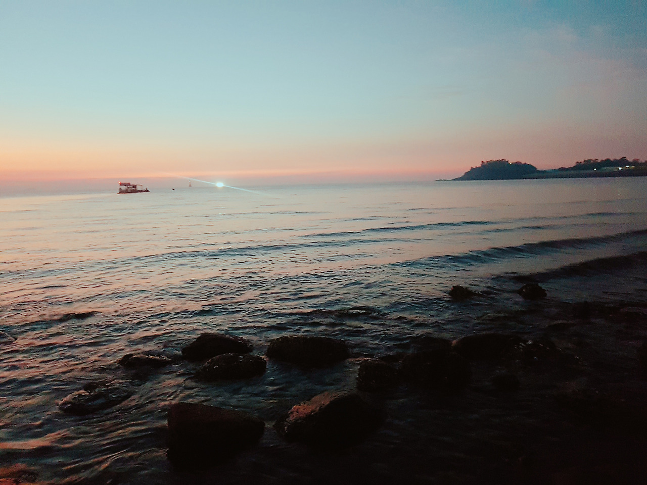 숙소가 변산반도 동쪽에 있어서 가는 길에 여러가지 장관을 만나게 되었다. 해가 뉘엿뉘엿 져가는 중에 구름과 아름다운 해변의 경치가 들어 온다. 어머니는 해가 지는 저 곳에서는 너무 뜨거워서 고기들이 익어 버린다고 해학과 풍자를 넘겨 주셨다. 귀여워지고 있는 어머니. 그냥 조용히 감상하면서 찍은 사진들이 다 예술이다. 맞다 맞아. 원래 이렇게 아름다운 것이 우리 주변에 풍부하게 넘쳐나고 있었을 것이다. 30분을 더 가니 그 유명한 채석강의 강변에 주상절리가 나온다. 저녁즈음이라서 자세하게 볼 수는 없었지만 오히려 더 운치있고 감상적이었다. 이것들을 보면서 들뢰즤의 탈지층화, 탈영토화가 생각나는 것은 나만 그런것인가?