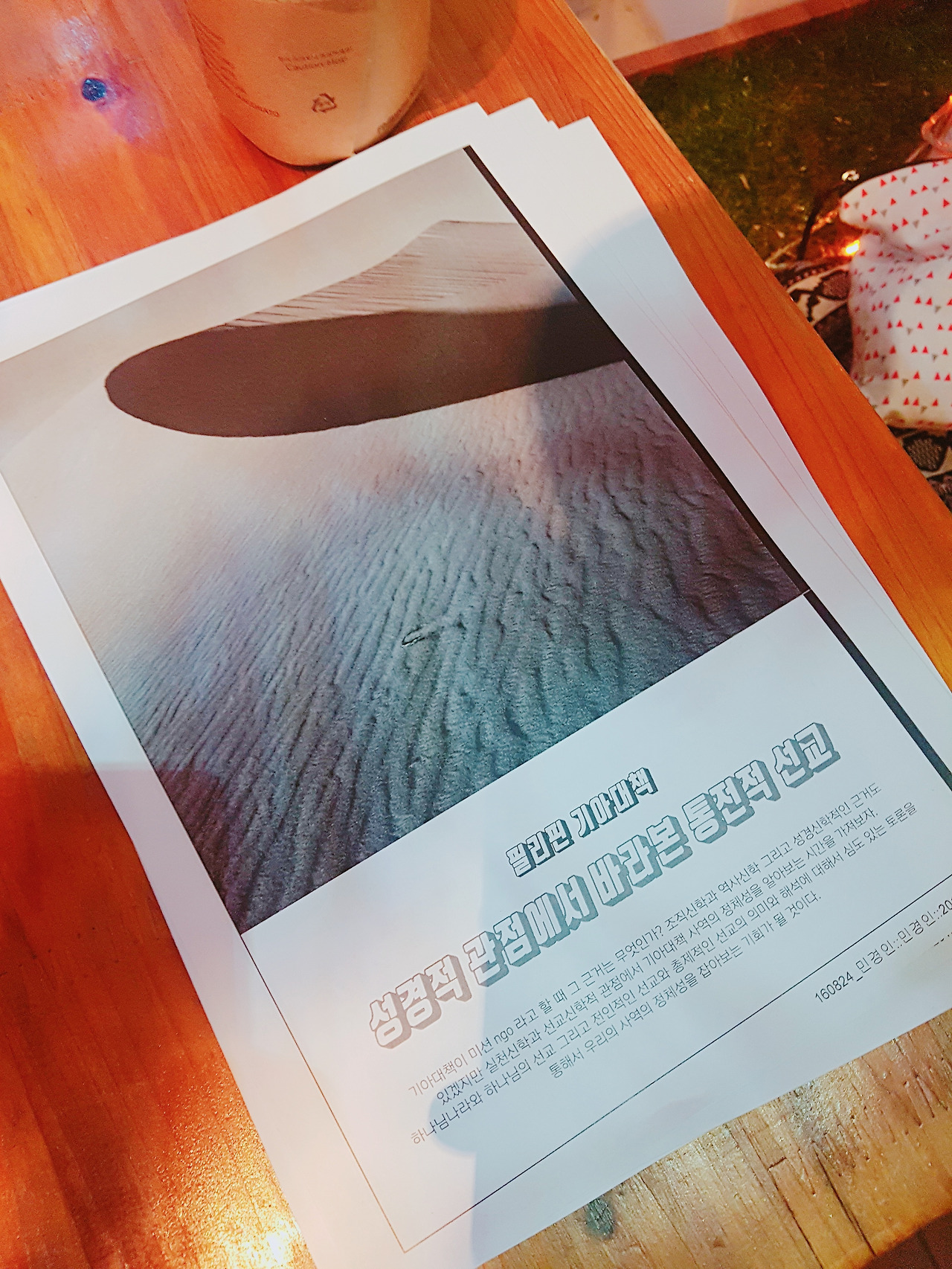 필리핀에서 사역하시는 기대봉사단 선교사님들과 하나님나라와 일상의 변화에 대한 논문을 읽고 토론 중이다. 역시 전문가들의 이야기의 질이 다르다.