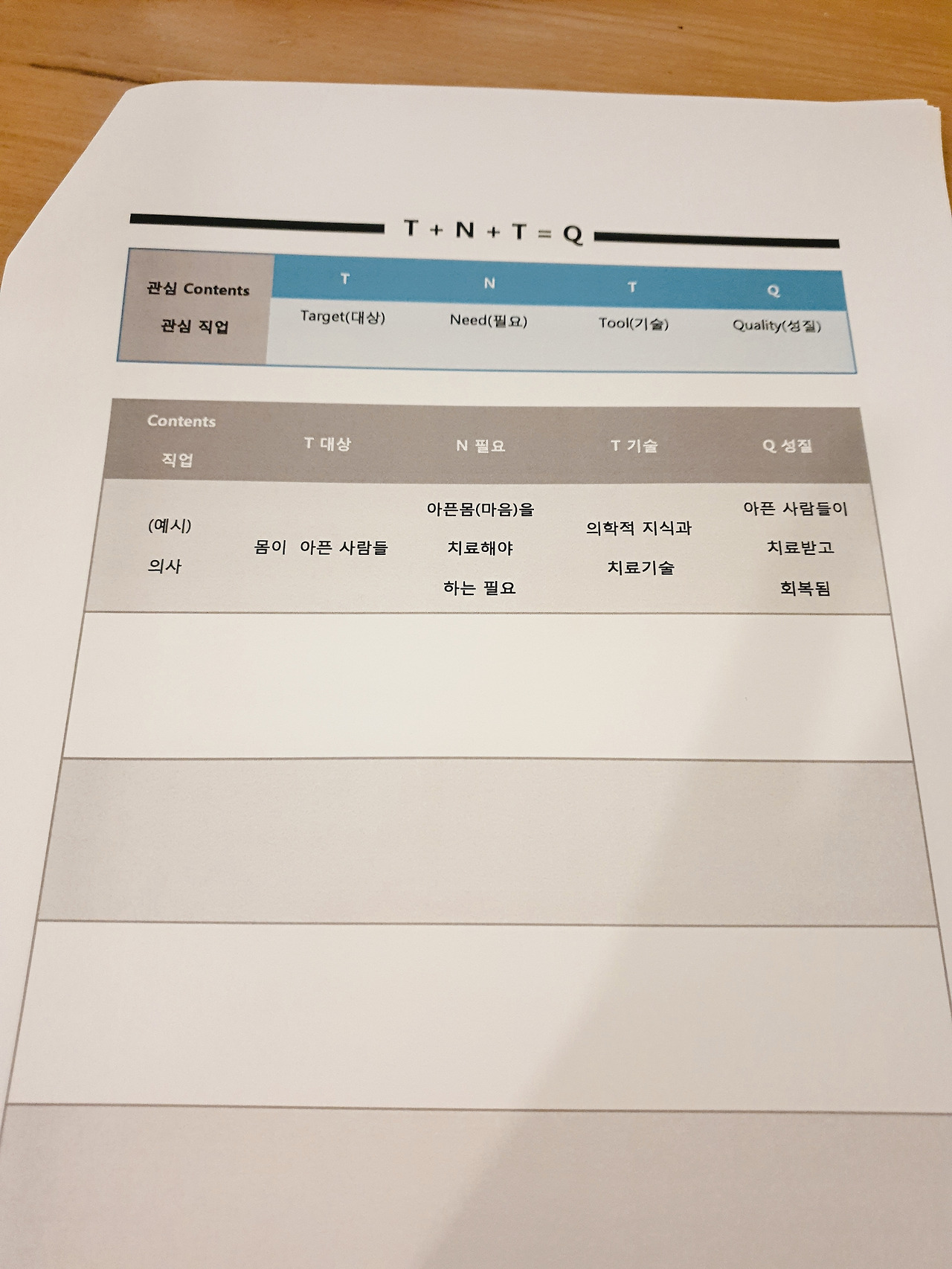 T는 대상인 Target이다. 나는 어떤 사람들에게 나의 소명을 사용할 것인가? 나는 누구를 돕고 싶은가?
