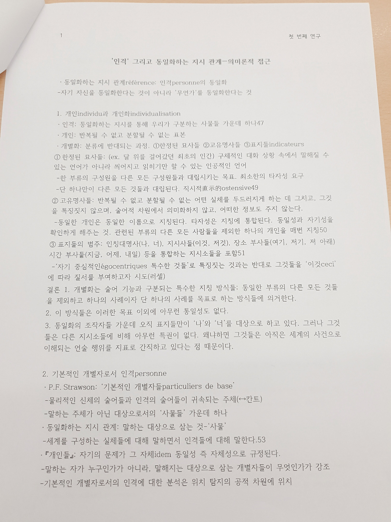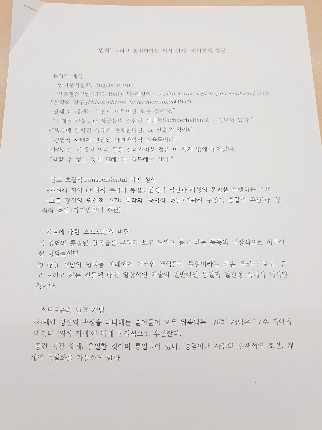 타자로서 자기자신을 들어가면서 우리는 오늘 ‘주체’에 대한 이야기를 더 할 것이다. 인격에 대한 이야기와 계속해서 3인칭으로 화자가 자기성과 동일성을 발견해내는 과정에서 주체는 시대와 공간에 따라서 구조를 바꾸는 힘을 가진 것으로 인식될 것이다.
