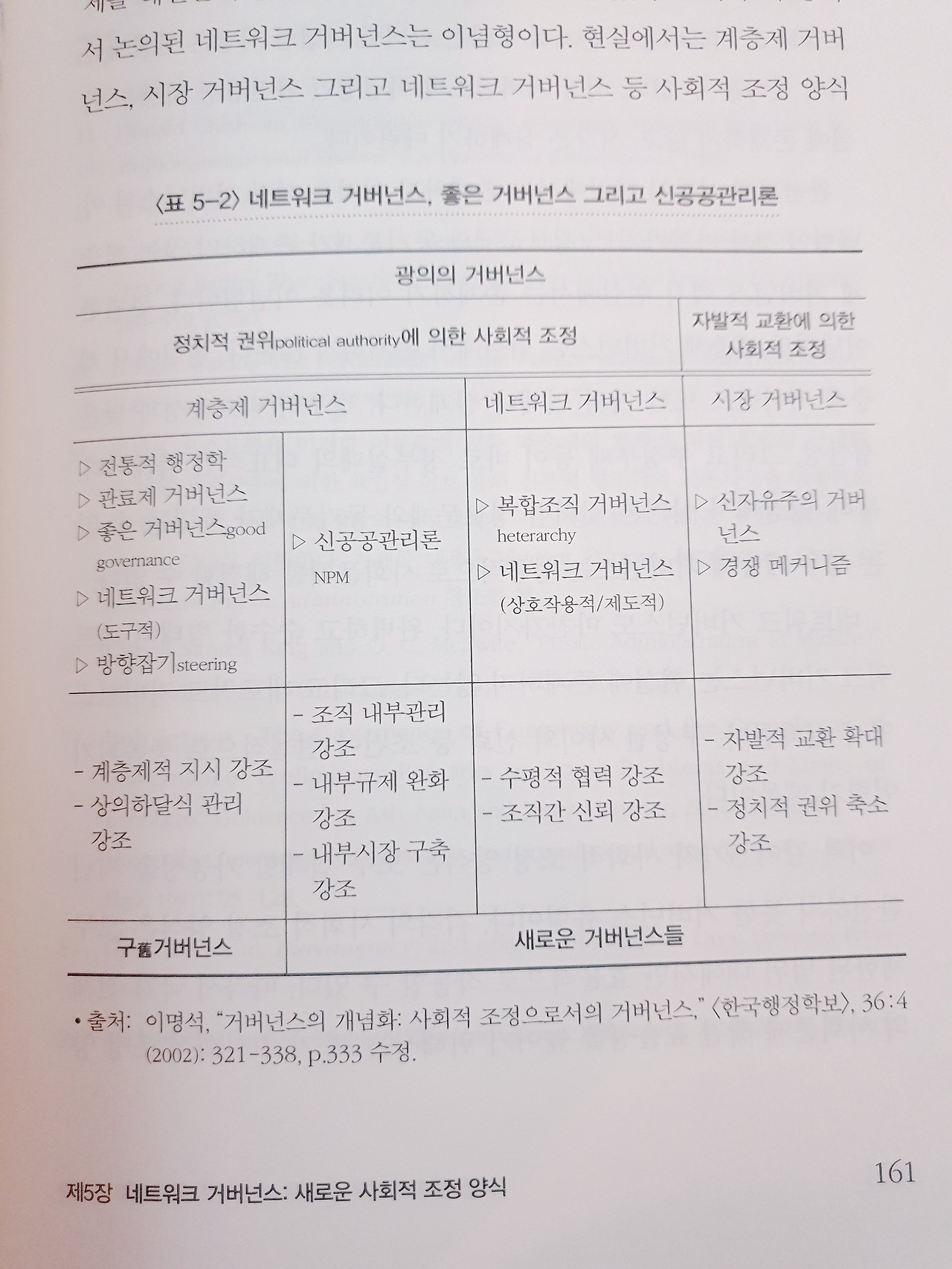 광의의 거버넌스의 개념에서 볼 때 신거버넌스나 새로운 거버넌스는 개모두 새로운 대안이라는 공통점을 갖는다.