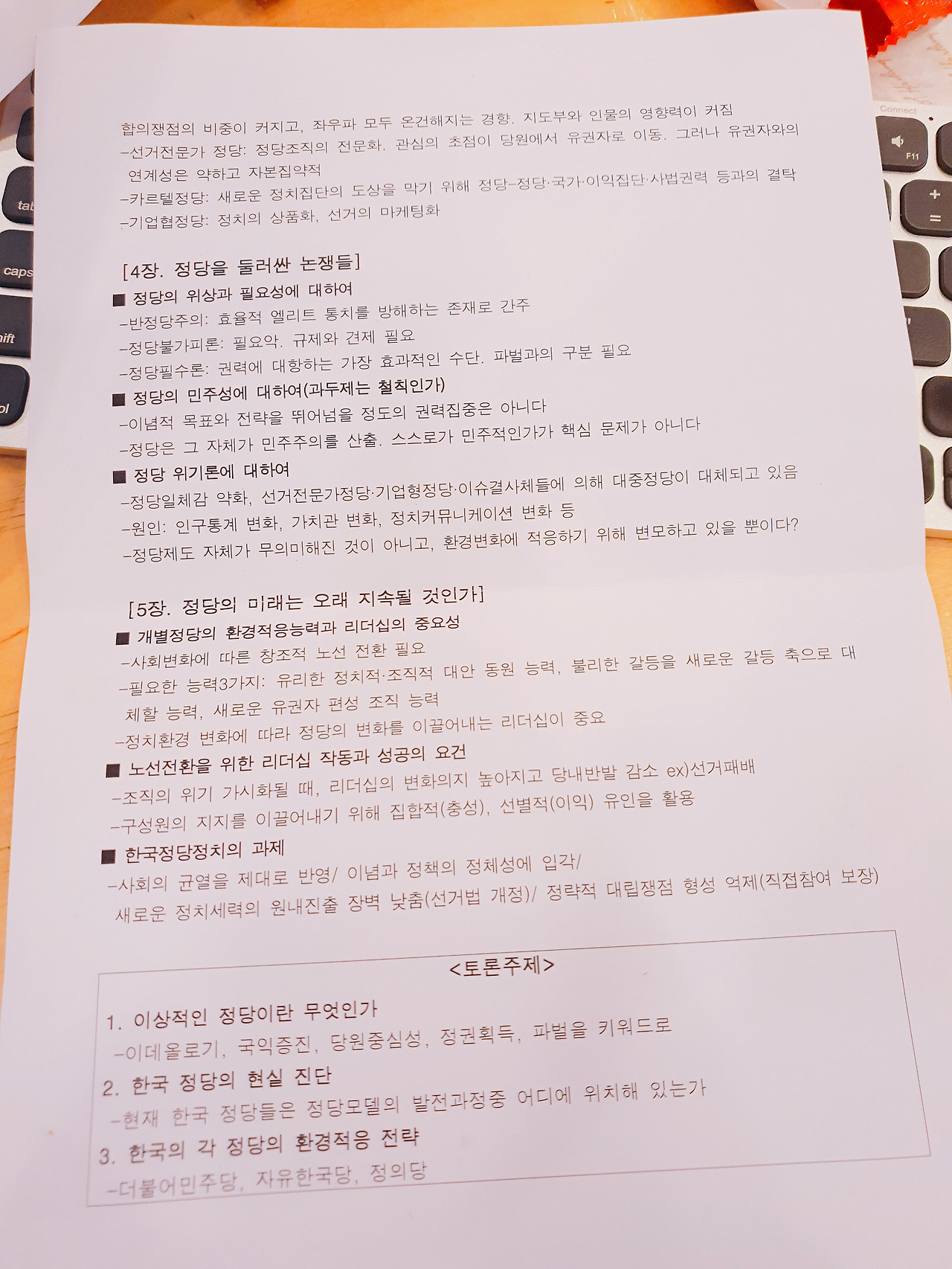 오늘은 한국정당의 문제와 정당의 새로운 미래를 고민해보는 시간을 가져보자.
