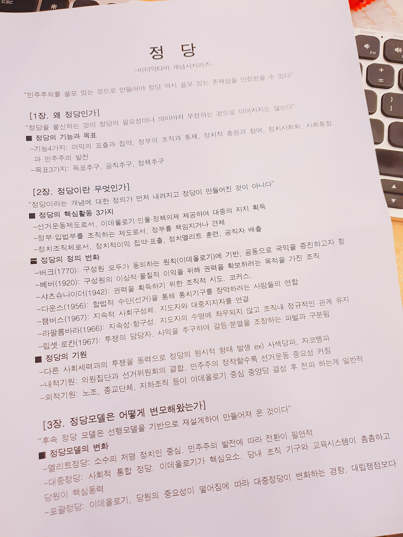1.이상적인 정당이란 무엇인가? 이데올로기, 국익증진, 당원중심성, 정권획득, 파벌을 키워드로 이야기해보자.