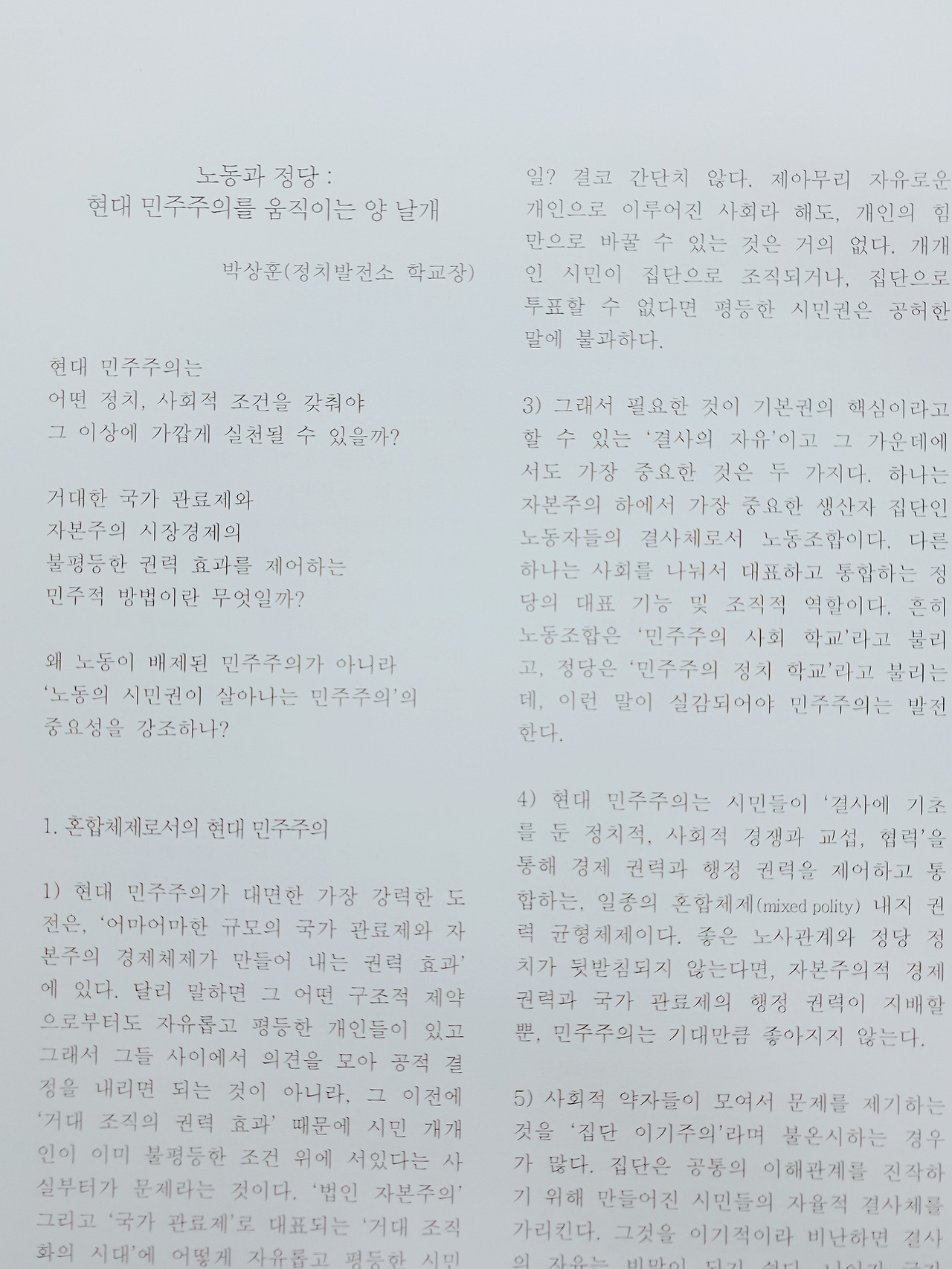 노동과 정당_현대 민주주의를 움직이는 양날개_박상훈 대표(정치발전소)