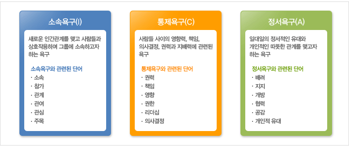 ▶통제욕구(Control)는 사람들 사이에 영향력을 행사하고 통제하고자 하는