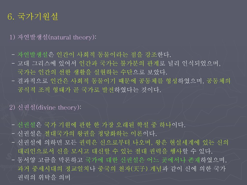 2장 권력의 의미론에서는 사물들을 해석하는 의미 지평을 만들어냄으로써 사물들이 의미를 갖게 하는 권력 작용이 논의된다. 이러한 의미화 작용을 통해 권력은 의미화의 가능성을 아예 파괴해버리는 폭력과 구별된다. 권력은 타자를 완전히 억누르거나 무화시키는 폭력이 아니라, 오히려 타자라는 부정적 긴장감을 관통하여 자신을 연속시킴을 통해 타자를 장악한다.