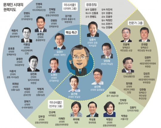 3. 대략 대통령이 되면 1000개정도의 리더들을 임명할 권한과 권력이 생긴다고 한다. 만약 당신이 대통령이라면 어떤 방식으로 권력지도를 만들 것인가? 주변에 두고 싶은 측근은 어떤 사람이면 좋겠는가? 아래에서 보는 이너서클, 핵심측근, 전문가그룹 등등으로 생각해보자.