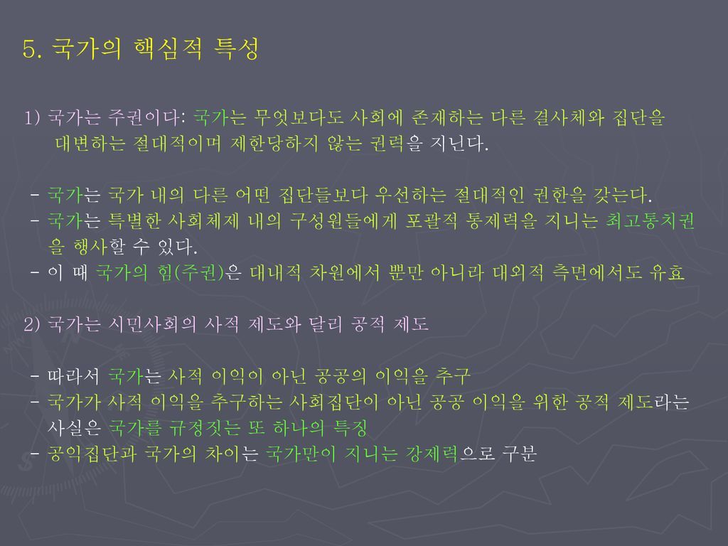 4장 권력의 정치학에서는 현실적 정치 행위를 제대로 인식하기 위해 권력이 기본적으로 자기중심적이라는 것을 인정하게 한다. 권력의 시선은 기본적으로 자기 자신만을 향한다. 그렇기에 권력 그 자체로부터는 다수적인 것, 다종적인 것, 다양한 것에 대한 호의가 나오지 않는다. 여기에서 권력의 윤리(학)에 대한 요구가 생겨난다.