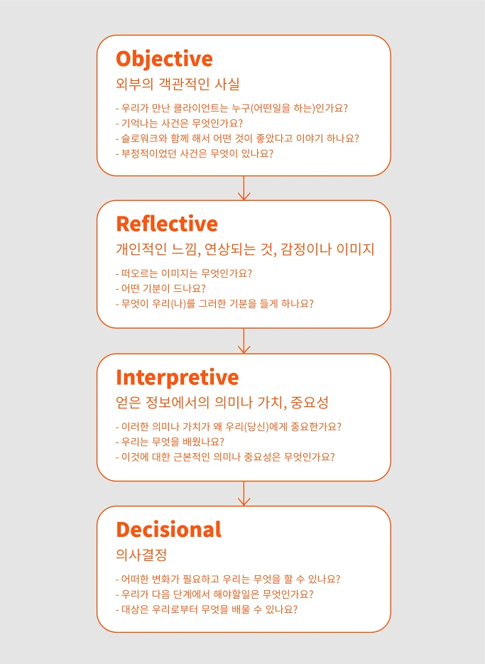 기본적인 책 탐색을 마쳤으니 이제 핵심으로 들어가보자. 여기서 사용할 기법은 ORID방식을 사용할 것이다. 참여적 관찰기법이라고 부르는 ORID는 먼저 객관적인 사실(Object)을 체크하고, 그러한 사실이 이제 나의 내면으로 들어올 때 느껴지는 것들(Reflection)을 성찰하는 것이다. 그리고 이러한 성찰이 나의 머릿속에서는 어떻게 해석(Interpretation)되는지를 바탕으로 나의 삶 속 대입해서 지금까지 내가 살아온 삶과 '지평융합'에 들어가는 것이다. 이해를 한 이후에는 자연스럽게 그것이 바깥으로 나오게 되는 지점이 오는데, 이것이 바로 새로운 변화 혹은 결심(Decision)이 된다. 한병철쌤의 책을 ORID방식으로 살펴보자. 그리고 마침내 '권력이란 무엇인가'에 대해서 자신만의 성찰, 이해, 결심을 살펴보는 시간을 가져보자.