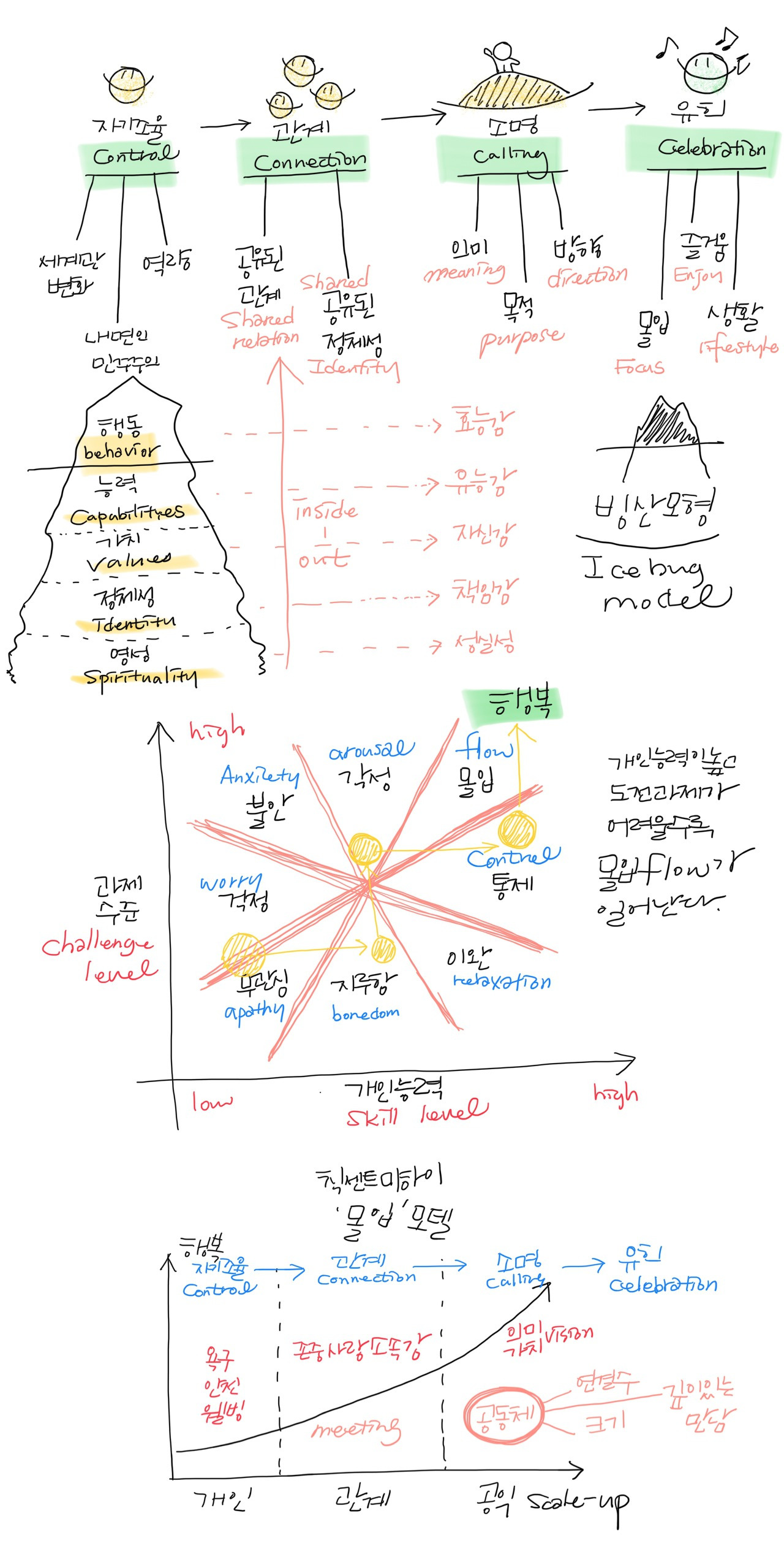 - 자기조율를 통해서 공동체에 참여하여 관계를 맺고, 그 관계 이후에 공동체의 비전을 통해서 소명을 발견하고 몰입하여 즐거움과 유희를 즐기게 된다.