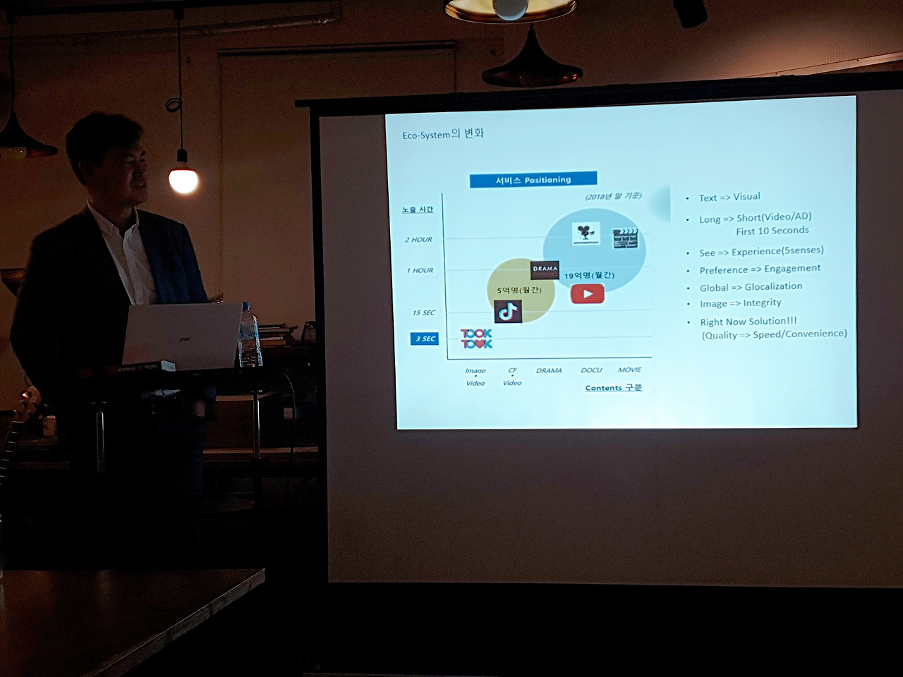 컨텐츠는 밀레니얼세대, z세대 대상 서비스를 진행했고, 개인맞춤과 추천서비스를 진행했다 30분 이내의 비디오가 대세가 된다.