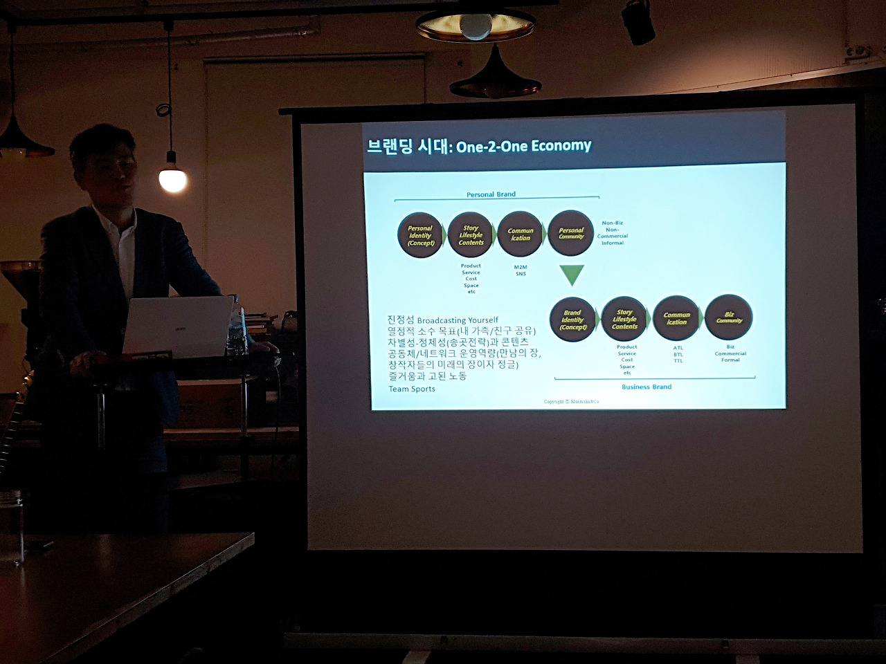 개인화된 커뮤니티는 브랜드정체성(컨셉)으로 바뀌고 이것이 다시 스토리-의사소통-비지니스 브랜드까지 발전하게 된다.