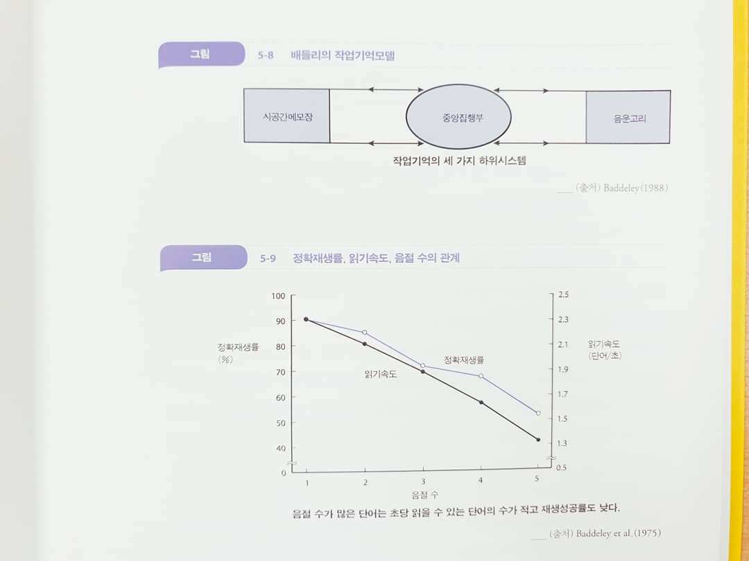 그는 단기기억이라는 용어 대신 일하는 기억, 즉 작업기억working memory라는 단어를 사용했다. 또한 작업기억은 음운고리phonological loop, 시공간메모장visu-spatial sketchpad, 중앙집행부central executive라는 성격이 다른 세게의 하위 시스템으로 이루어져 있다고 가정했다.(Baddeley, 1998)