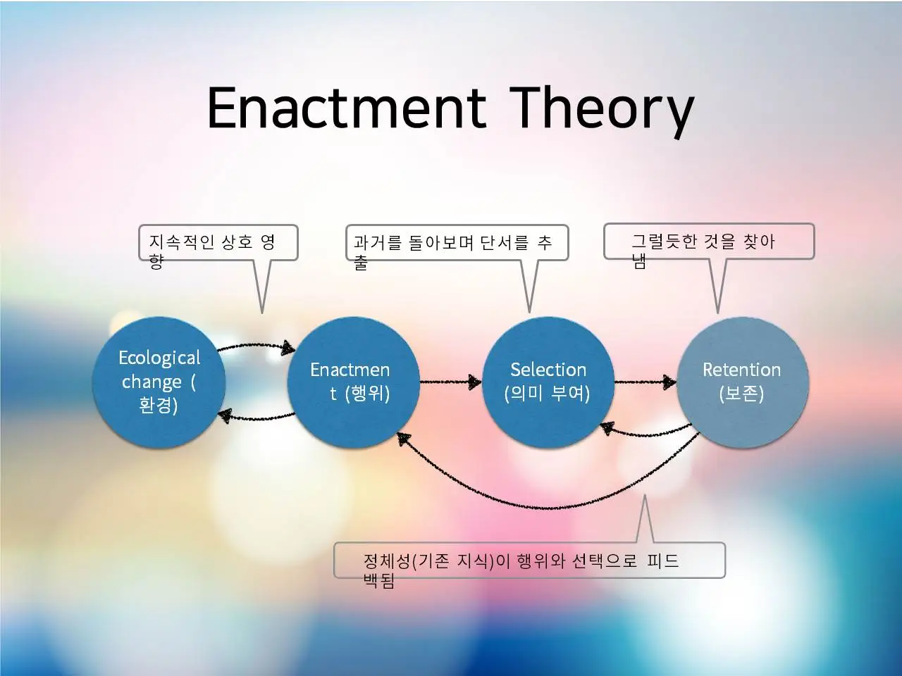 'ecological change-enactment-selction-retention'이 계속 이어지게 된다.