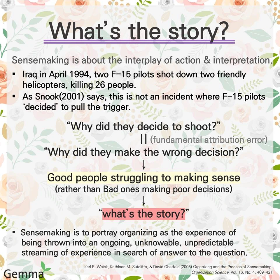 센스메이킹은 그래서 결국은 '그들은 왜 그렇게 선택했을까?'에 대한 답을 찾기 위한 과정이다.