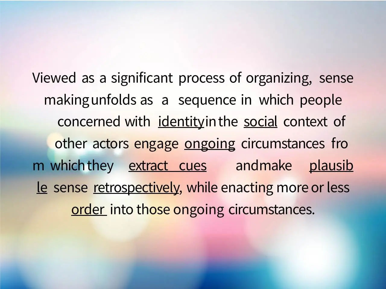 센스메이킹은 우리가 감지된 것과 인식된 것으로부터 이해하고 있다는 것을 보여주는 단서가 된다.