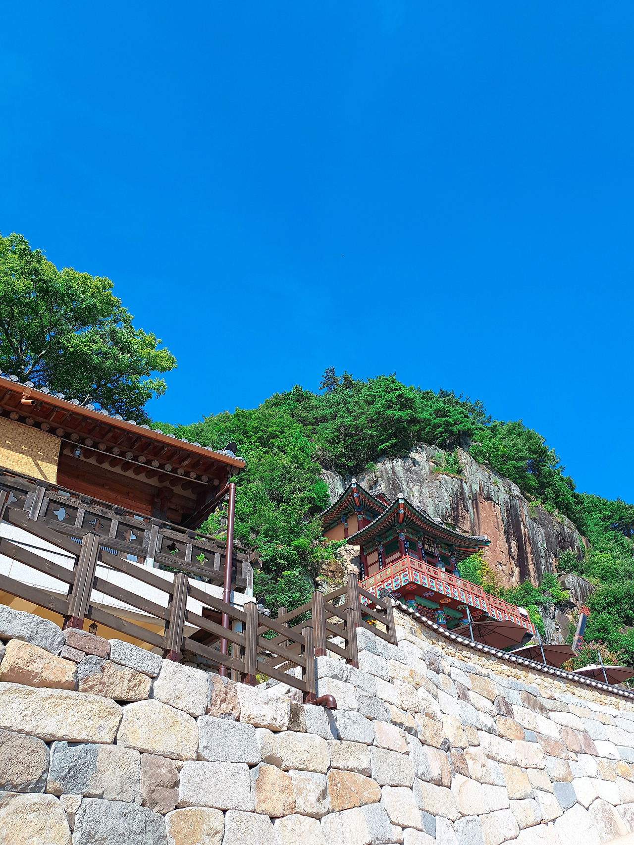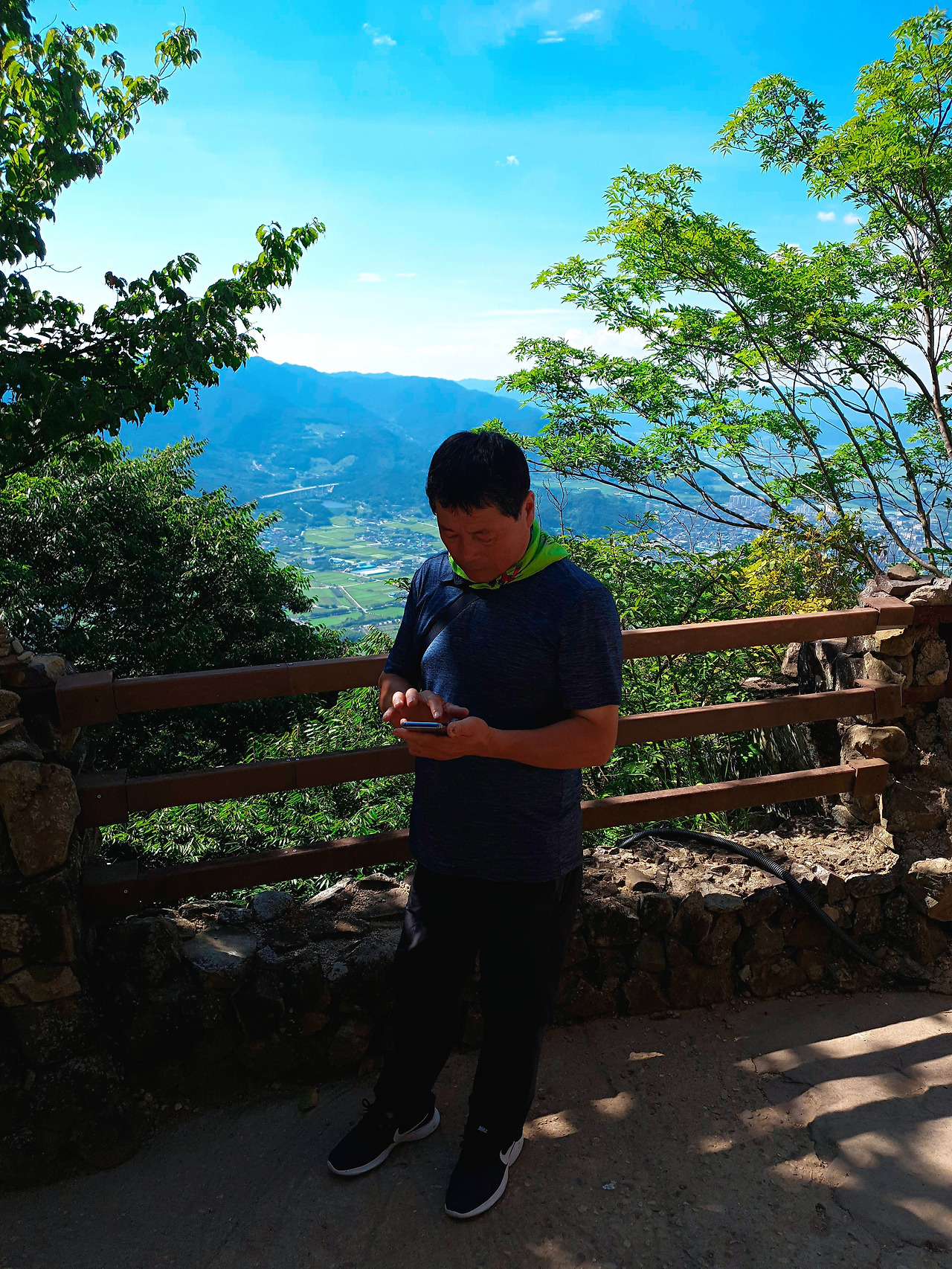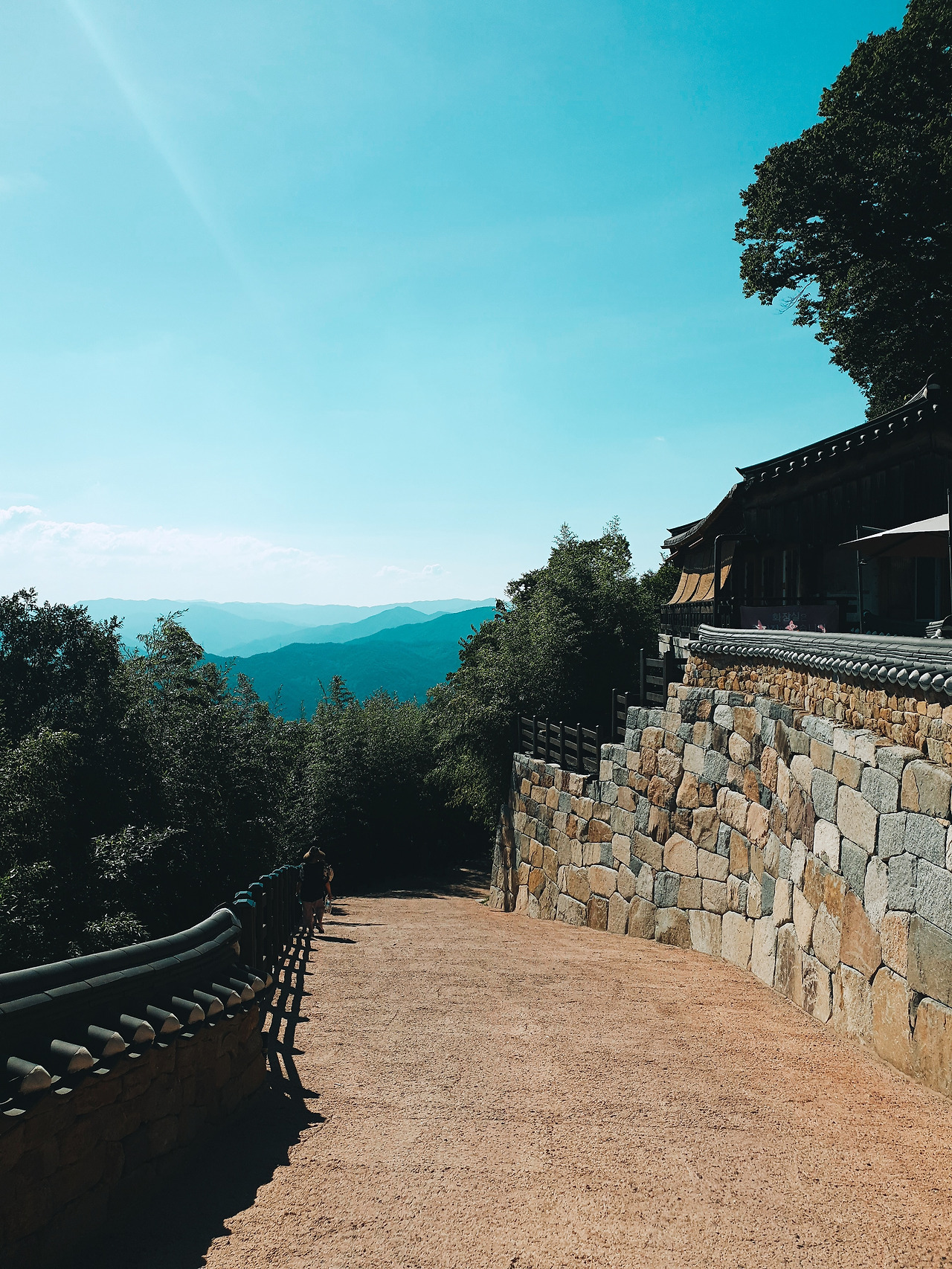 버스를 타고 10분정도 올라가서도 10분정도를 꼭대기로 올라가야 했고 결국은 완전히 산 꼭대기의 정자까지는 가보지 못했다. 그럼에도 불구하고 여기서 바라보는 광경은 그리스의 메테오라에서 보던 그 광경과 비슷했다. 인간이 올라갈 수 있는 가장 높은 곳에서 바라보는 경치란 이렇게 인간의 기분을 오묘하게 만드는지 모르겠다.