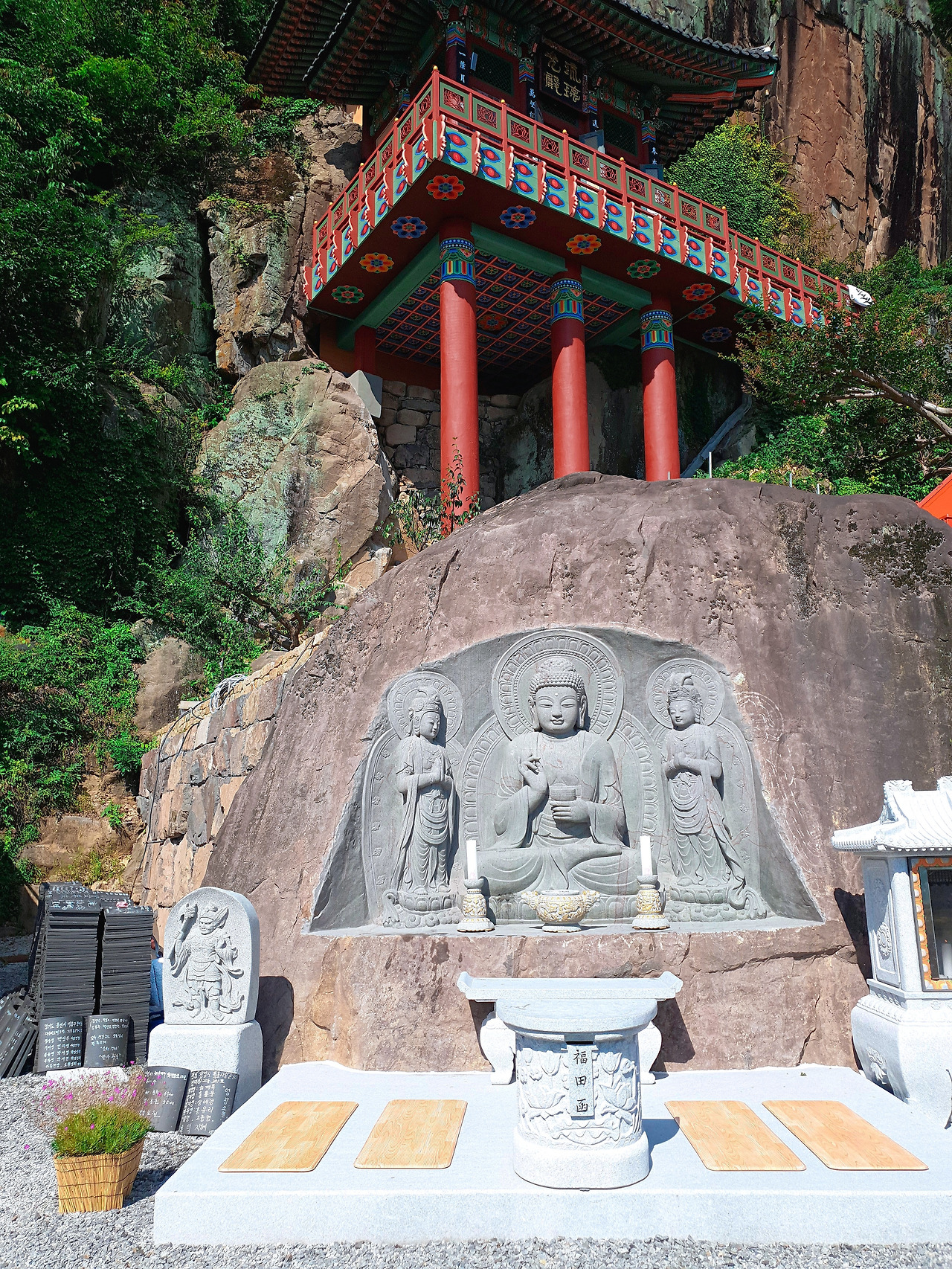 드디어 우리 여행의 마지막인 구례 사성암에 도착했다. 하동을 지나서 4킬로미터를 들어가지 화엄사로 가는 길이 나오고 그 가운데 차로 10여분을 올라가야 도착할 수 있는 사상암이 있었다. 전라도의 도솔암과 같이 절벽에 꽂혀 있는 사성암은 역시 많은 이들이 다녀갈 만했다.
