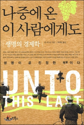"천국의 포도원에는 처음과 나중이 없다"이것은 하나님 나라와 구원의 영속성을 이야기하지만 존 러스킨에게는 당대에 외롭게 투쟁하고 후대에 빛을 비출만한 반-경제학의 모토가 된 성경 본문이다. "동일 노동, 동일 임금"의 법칙을 깨뜨리는 이 이상한 불평등은 '마지막에 온 사람'에게도 동일한 구원을 베푸시는 그리스도의 모습을 보여준다. 처음에 온 사람들과의 계약을 정직하게 이행할 뿐 아니라 나중에 온 사람들에게 '동일한 보수'를 줌으로써 결국 모두의 부를 창출하는 주인의 모습은 인간의 이성(선형적 논리)을 넘은 지혜로움이다.