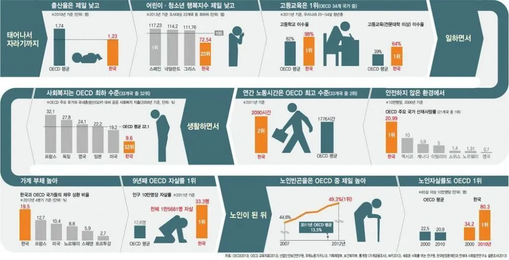 한국경제의 모습을 보자. 1991년부터 2016년까지 OECD평균과 한국의 평균을 비교해보자.