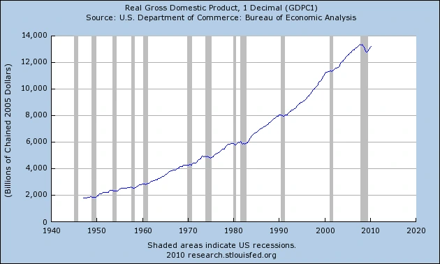 1920년대 말 경제대공황 이후 최악의 경제위기를 맞이한 2008년의 상호아은 미국의 실질 국내총생산이 하락하는 것을 볼 수 있다.