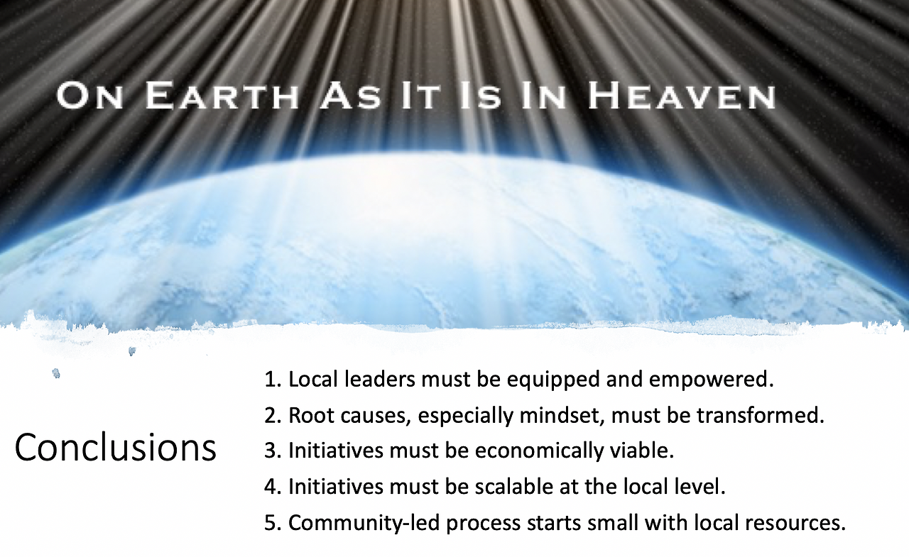 총체적인 변화와 그것을 위한 선교를 이루기 위해서는 '구호-회복-개발-지속가능'이라는 단계로 나아가야 한다.