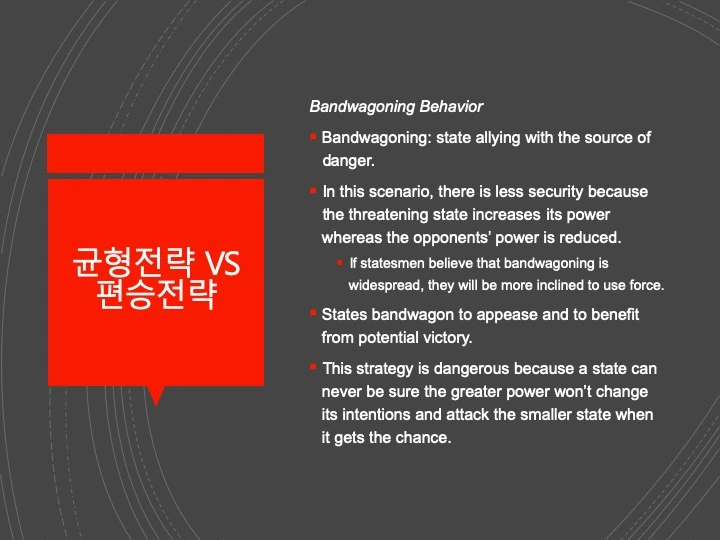 세력전이론은 세 계 체제의 정상에 선 지배국과 이에 도전하는 주요 도전국 사이의 경쟁만을 이론의 대상으로 삼으며, 이 구도에서 분쟁을 일으키는 쪽은 도전국으로 상 정되고 있다. A. F. K. Organski, World Politics (New York: Alfred A. Knopf, 1958); A. F. K. Organski and Jacek Kugler, The War Ledger (Chicago: University of Chicago Press, 1980). 이후 연구에서 학자들은 평형과 전쟁의 상관관계의 연구를 강대국 하위 체 제의 수준까지 분석의 범위를 넓혔다.