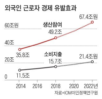 농임업이나 건설업, 제조업의 경우에는 외국노동자들이 없으면 산업이 돌아가지가 않는다. 그러나 급여의 차등화의 문제는 발생할 수 밖에 없다.