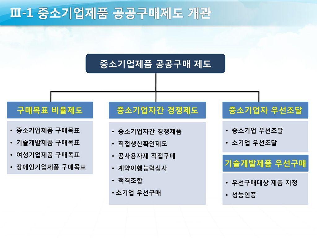 -기술개발제품: 중소기업제품 물품 구매의 10% 이상 구매(의무)