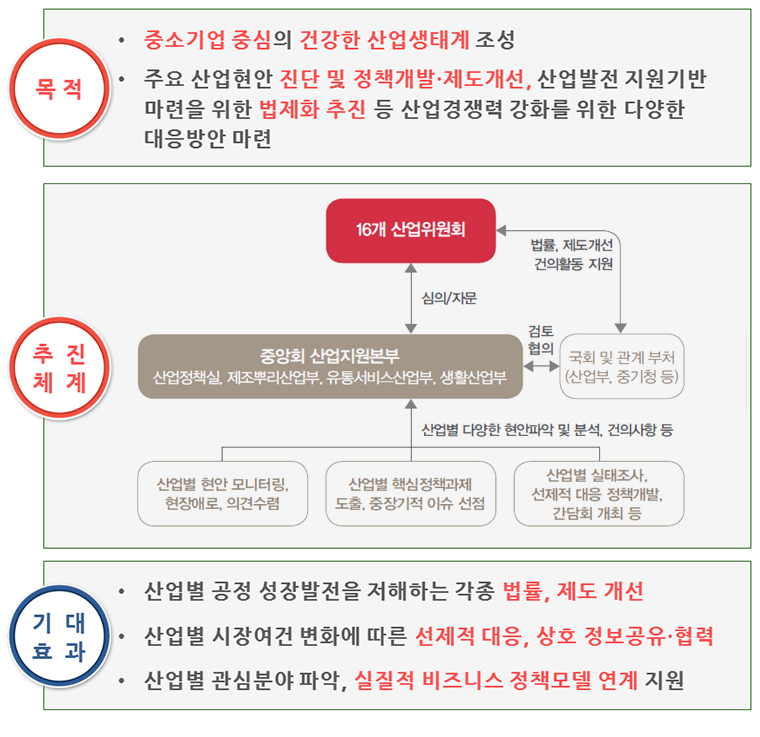 협동조합 정책개발, 역량강화, 공동사업 지원을 통한 중소기업의 조직화 및 협동조합 기능활성화를 위해서 만들어졌다.