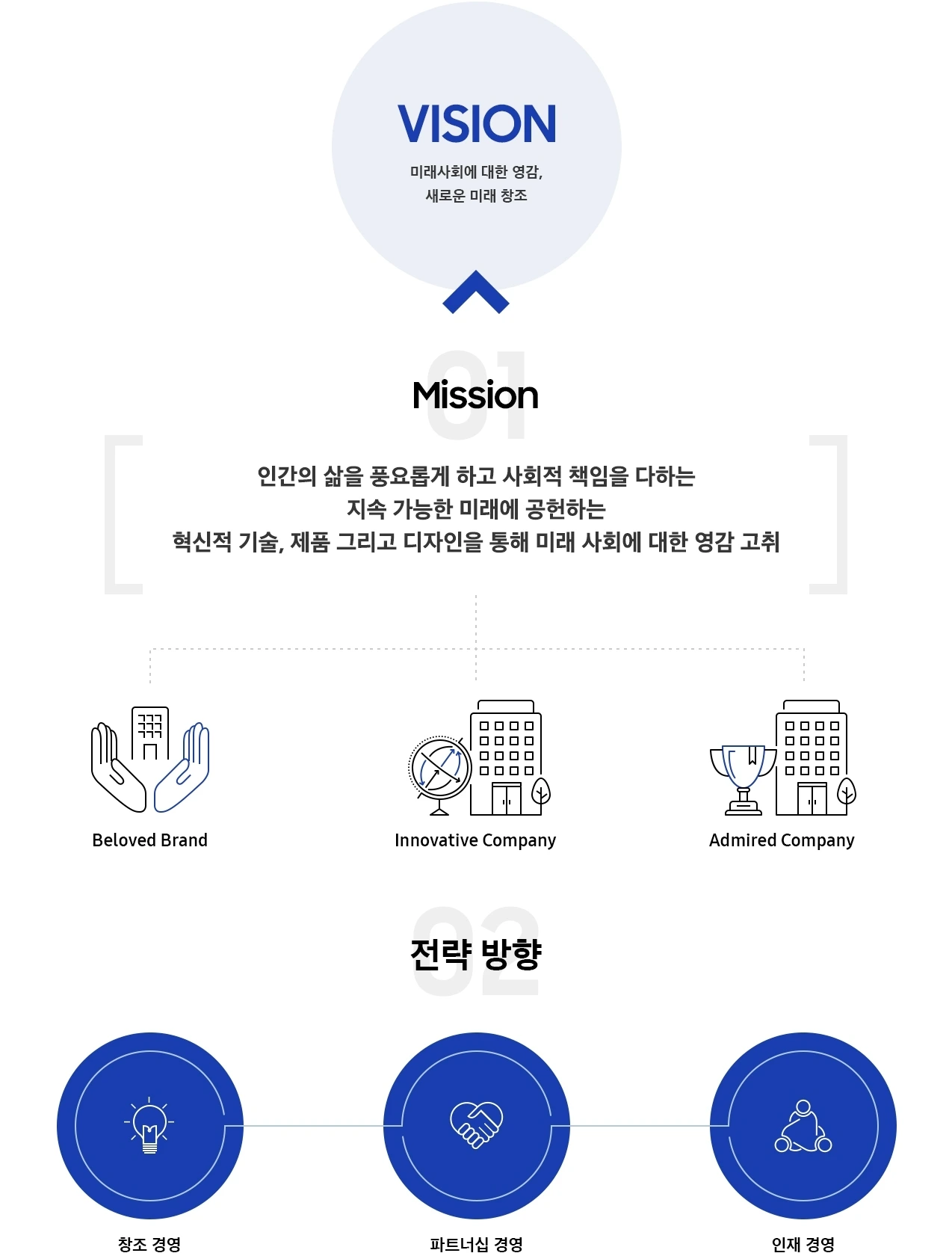 크기로 볼 때도 비전에서 미션으로 사이즈가 작아지고 전략은 더욱 작아지는 것을 볼 수 있다.