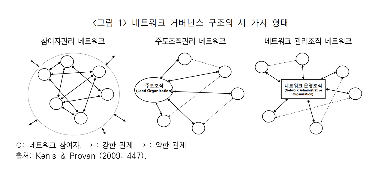 공식적인 권위 없이도 다양한 행위자들이 자율적으로, 호혜적인 상호 의존성에 기반하여 협력하도록 하는 제도 및 조종형태를 말한다.