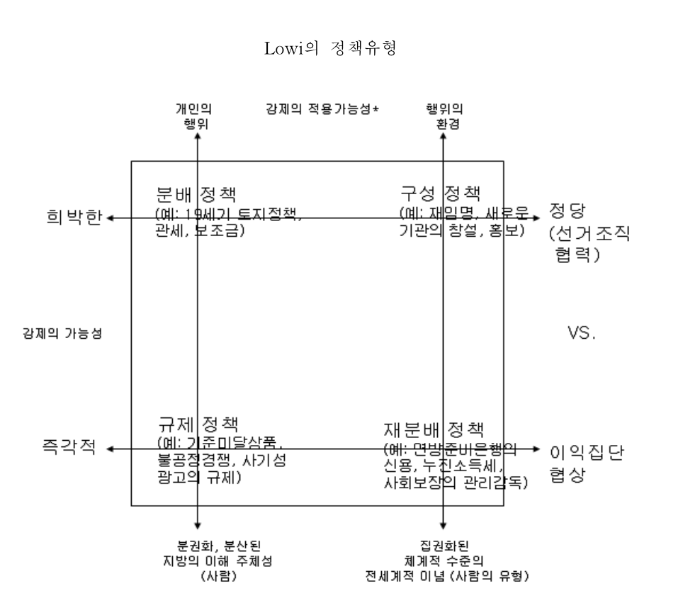 마찬가지로 로위는 강제적용의 가능성*강제의 가능성으로 아래아 같은 분류를 만들었다.
