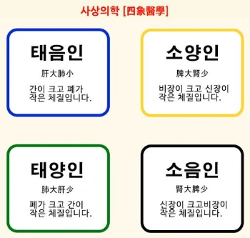 이제마의 사상의학은 4가지의 유형으로 구성한다.