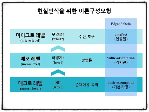 에드거 샤인은 조직문화를 3가지의 층위로 나누어서 설명하는데, 가장 눈으로 확인할 수 있는 영역이 바로 인위적인 결과물의 영역이다.