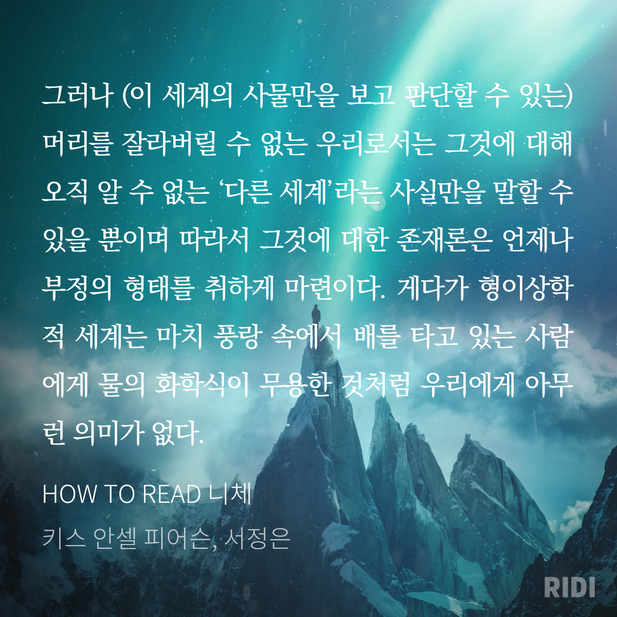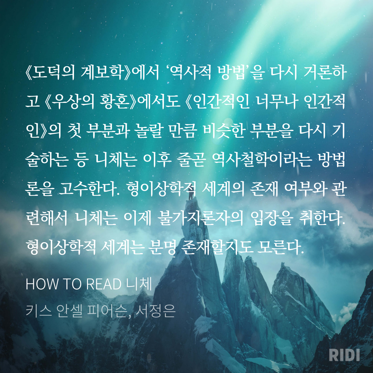 숙달된 안내자의 인도 아래 읽는이들을 원전 텍스트 자체와 대면하게 하는 것을 목표로 하는 'HOW TO READ'시리즈 중 니체를 다룬 책. 지은이는 니체의 작품에서 열 개 안팎의 짧은 원전 텍스트를 발췌해 자세히 살펴보면서 주요 개념을 드러내고, 그로써 전체 사상 체계로 들어갈 수 있게끔 도와준다.