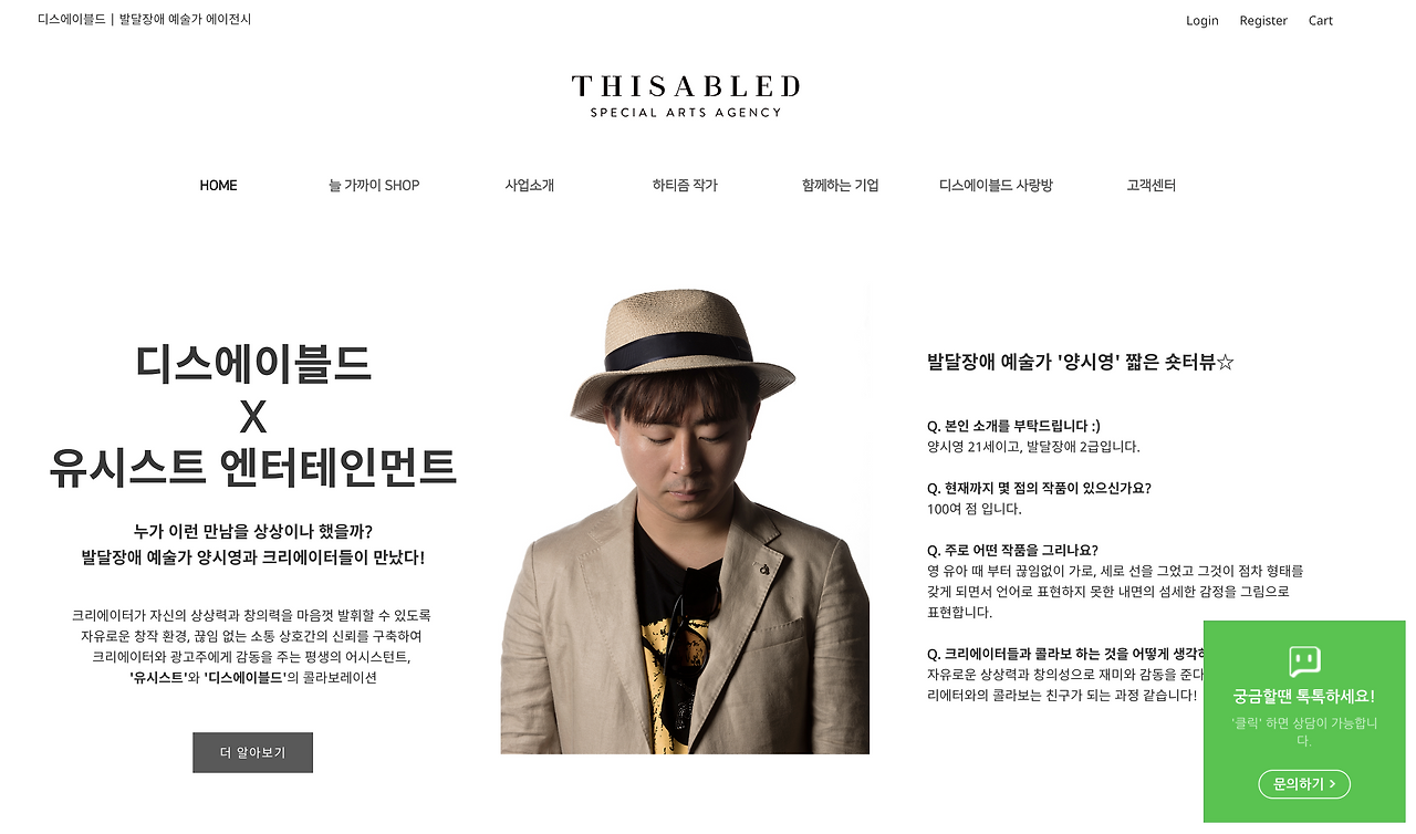 마지막으로 발달장애인들과 협업해서 디자인을 하고 제품을 만드는 'Thisabled'를 소개하고 싶다. 발달장애 예술가들만이 볼 수 있는 세계의 여러가지 단상을 제품에 담아서 다양한 굿즈로 판매하고 있다. 최근 착하소비나 의미있는 기부를 하고 싶은 사람들이 많이 찾고 있다.