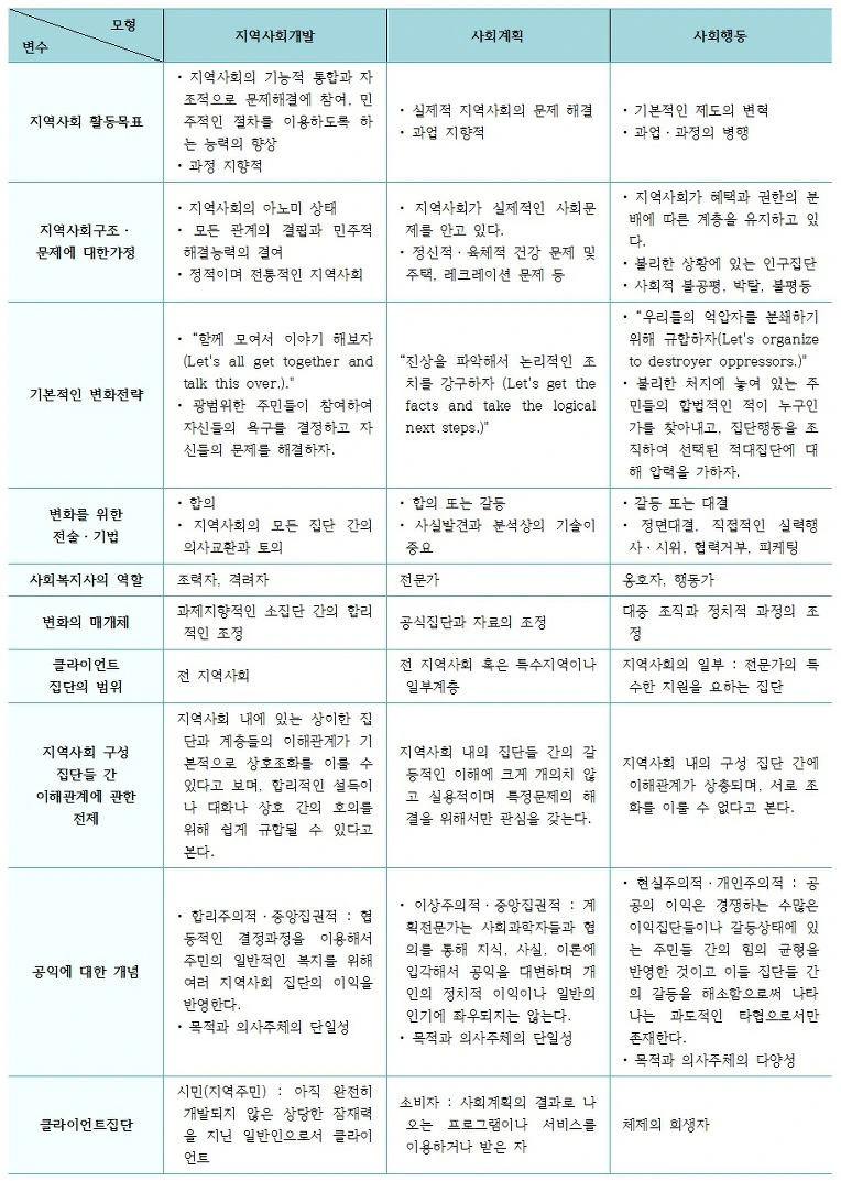 커뮤니티 복지라고 할 때 단순히 커뮤니티 안에 있는 모든 대상과 주체들을 다루어야 한다. 수혜자로서 대상만을 보는 것이 아니라 제도를 실행하고 혹은 기획하고 평가하는 주체들까지 모두 통합적으로 이해할 필요성이 있다. 거시적인 차원에서 미시적인 차원으로 내려오거나, 반대인 경우에서 우리는 무엇에 집중할 것인가라는 질문을 계속해서 던져야 한다.