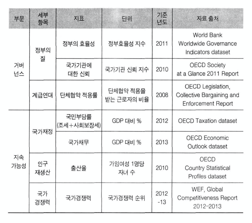 사회적 합의주의에 의한 복지제도의 지속가능성이 핵심이 아닐까? 정치변수를 상술로 놓기 위해서 제도적인 안정성을 가지고 있어야 하지 않는가?