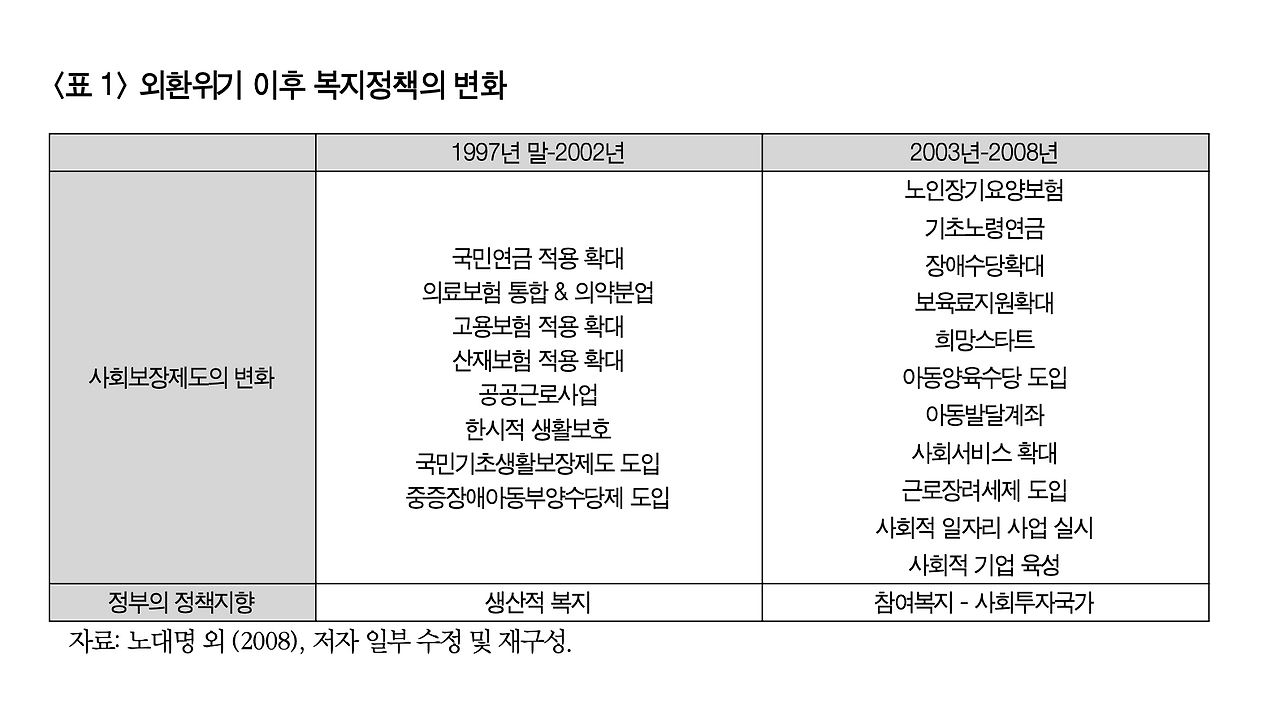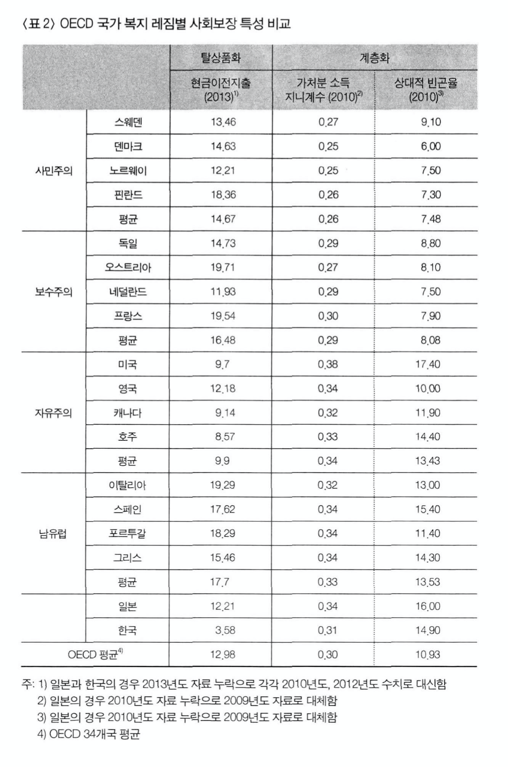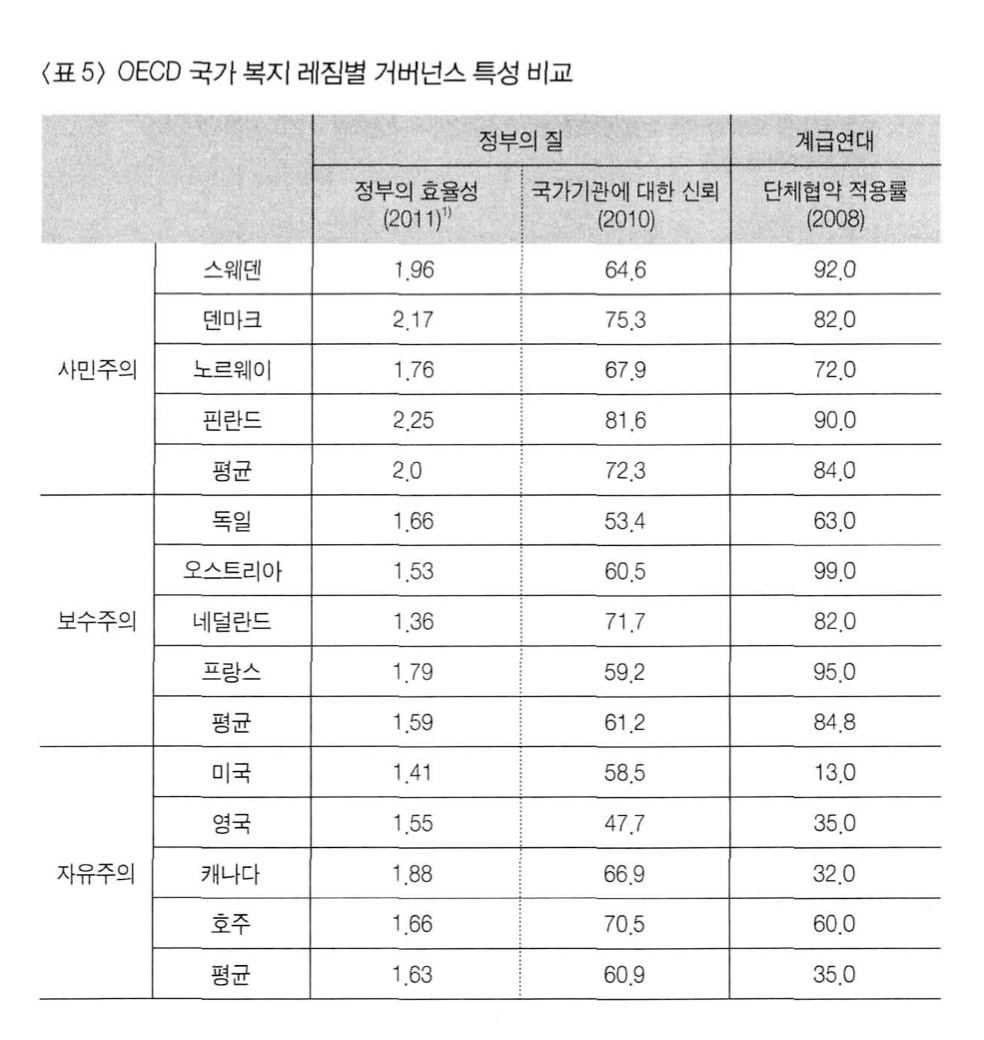 현재 복지국가는 남부유럽과 자유주의 국가의 특성을 강하게 보이고 있고, 그리스와 미국을 합친 듯한 모양새를 보이고 있다. 가치판단의 영역이기는 하나, 그리스와 미국의 혼합형을 한국 복지국가가 가야할 미래로 여기는 사람은 많지 않다.