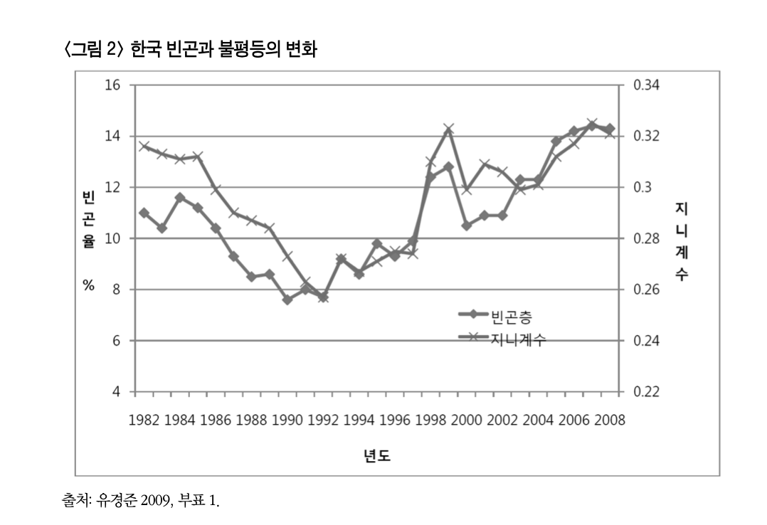 OECD 국가 중에서 가장 빠른 속도로 사회지출이 증가하고 있는 것이 그 증거다. 한국은 1990년 이래에 매년 12%씩 곡적 사회지출이 늘고 있어서 OECD 평균을 훨씬 웃돌았다.