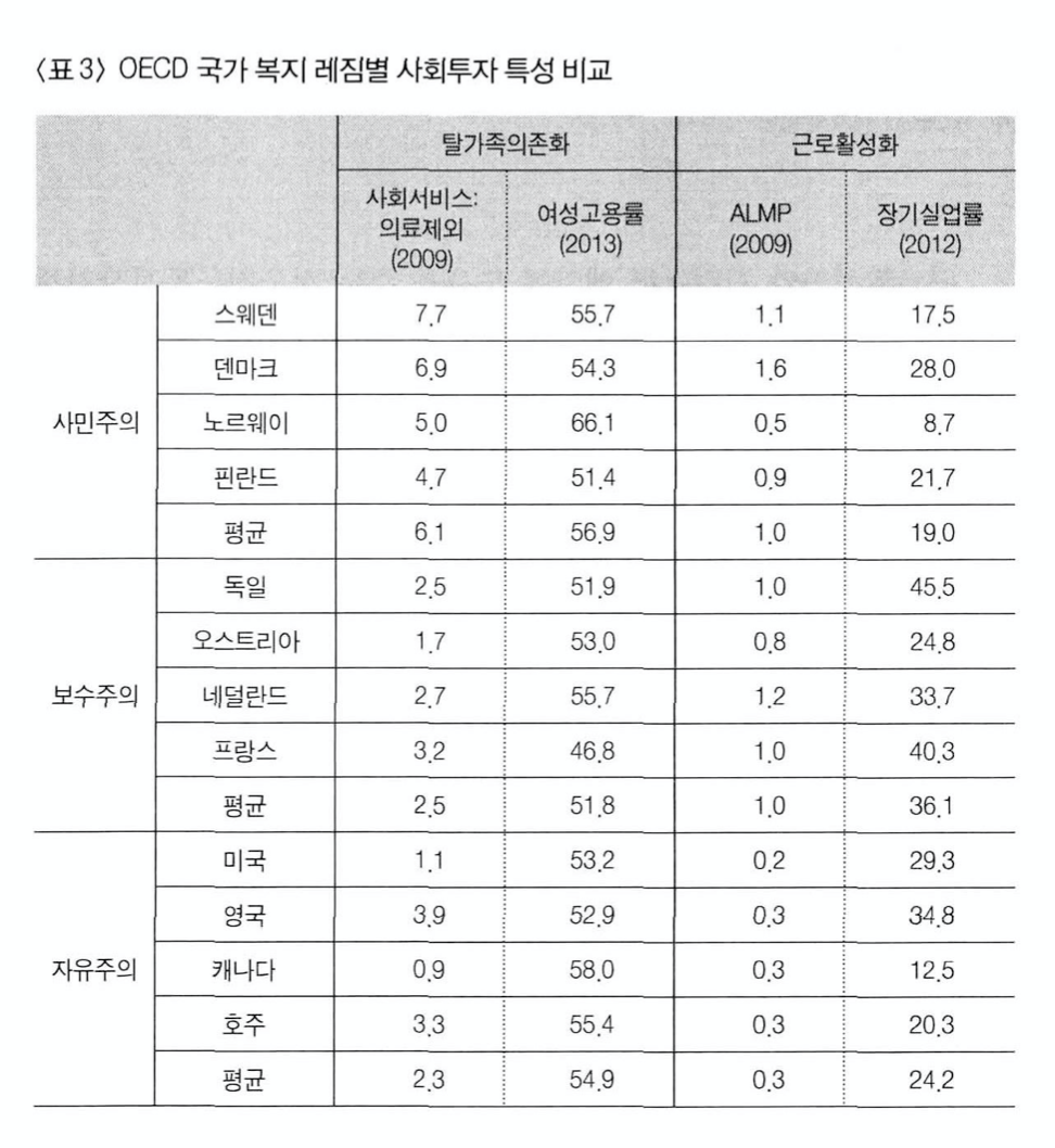 사민주의의 예에서 보듯이 누구나 일할 수 있는 여건을 마늘어 내는 것이 복지국가의 1차적 과제이다. 이는 넓은 세원, 그리고 사회보험제도가 원활히 작동하는 기초로서도 중요한 의미가 있다. 사회보장을 강화하되 사회투자형 복지지출을 늘려 고용률을 높이고 경제와 복지의 선순환 고리를 강화애햐 한다.