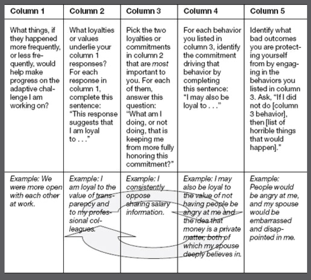 사람들은 자신이 직면한 문제가 변화 적응적임을 인식하면 새로운 방식으로 학습해야 한다는 것을 인정하고 앞으로 나아가기 위해서는 손실을 감수해야 한다고 이해한다. 또한 갈등을 회피하는 태도에서 갈등을 인정하고 해결하는 태도로 변화하게 된다.