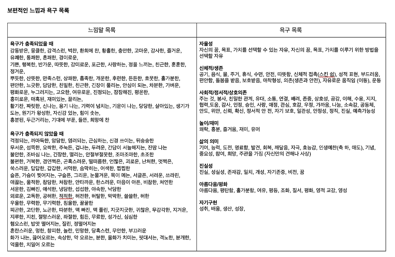 주관을 가짐(자신만의 견해나 사상), 중요성, 참여, 회복,